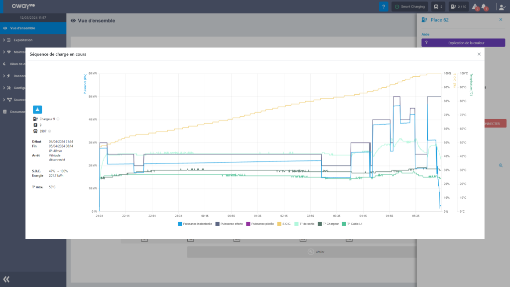 In the event of a problem with the charging process, an alert is sent automatically. The alert provides access to a detailed report of the event.