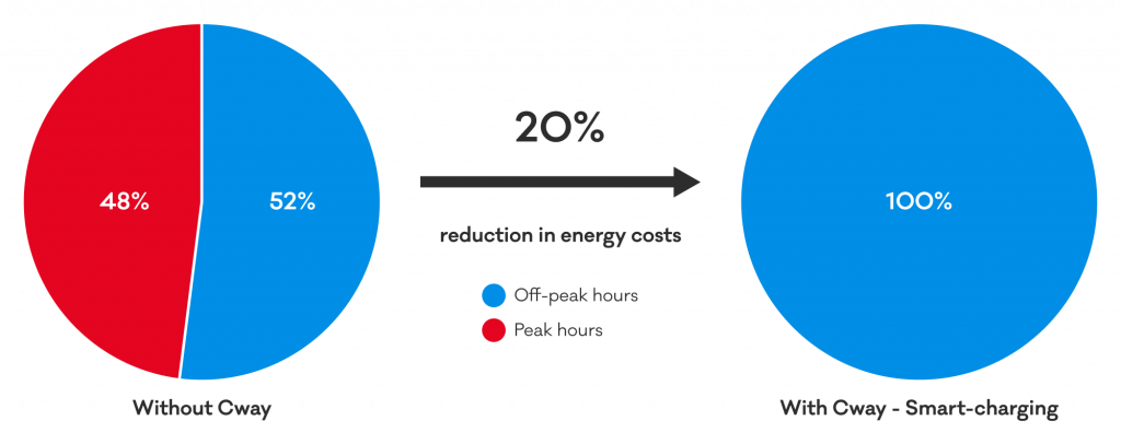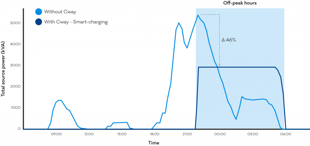 Cway automatically retrieves the operating schedule defined by your management solution and selects the charging power according to the vehicles’ departure time.
